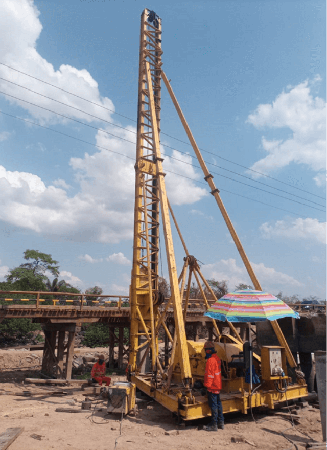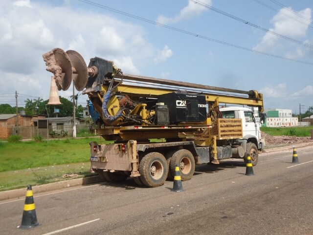 A perfuração é feita com trado curto acoplado a uma haste até a profundidade especificada em projeto, devendo-se confirmar as características do solo através da comparação com a sondagem mais próxima.